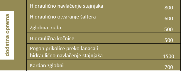 sa mehaničkim kočnicama, hidrauličnim kočnicama, zadnjim automatskim vratima i hidrauličnim lancem, hidrauličnim lancem koji ima podešavanje brzine,